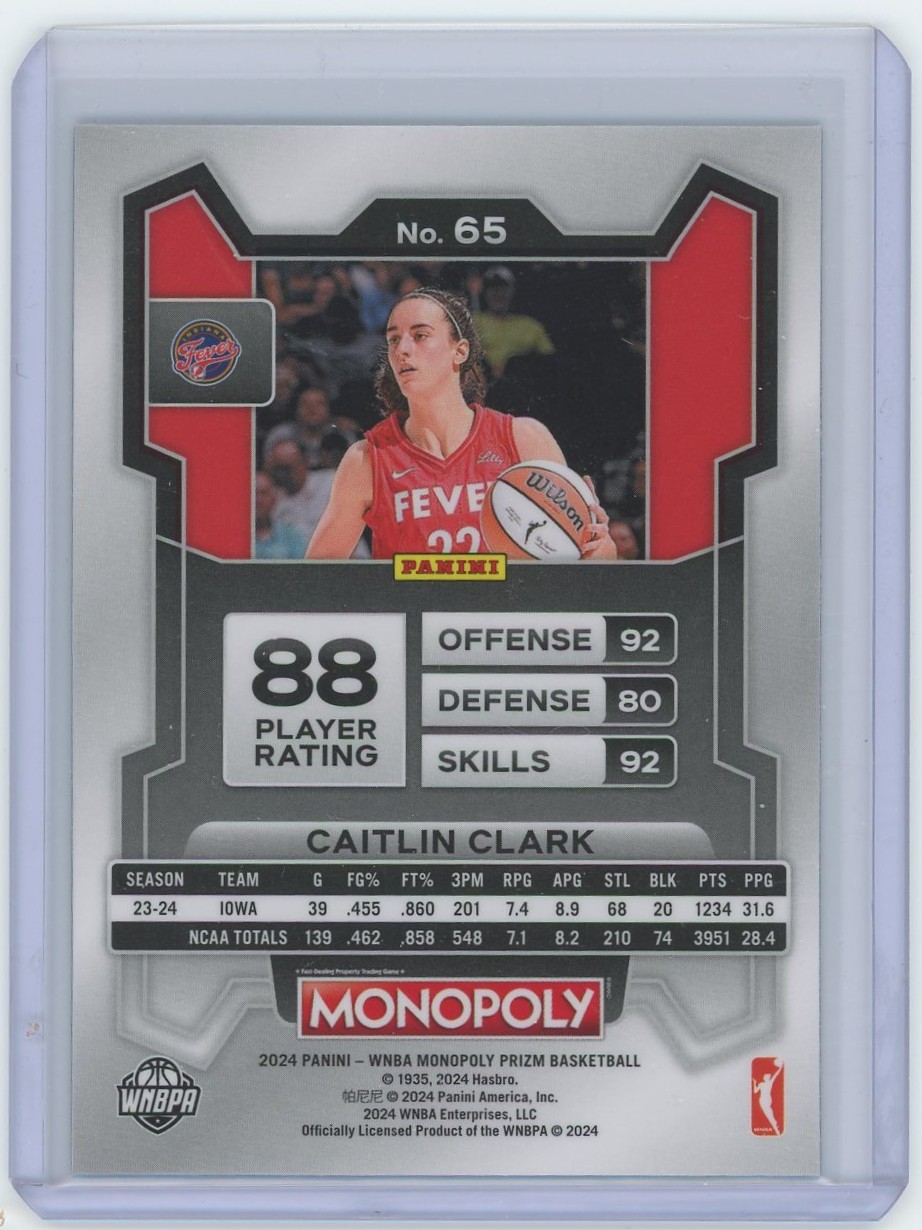 2024 Panini Monopoly Prizm Caitlin Clark Rookie Card